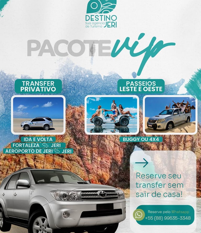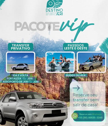 Oferecemos transporte exclusivo e passeios personalizados em Jericoacoara.