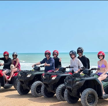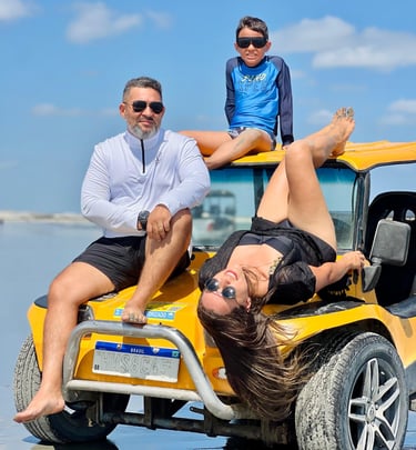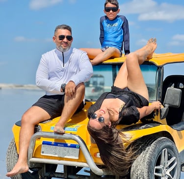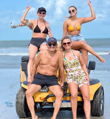 Escolha entre nossos passeios personalizados em buggy ou quadriciclo e transporte exclusivo.